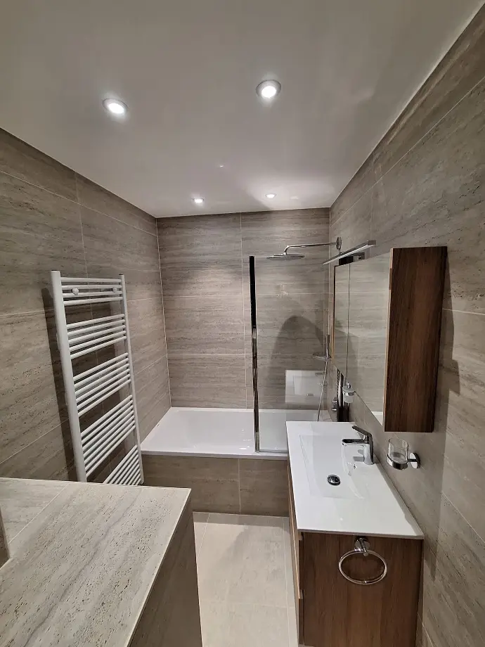 - Des matériaux haut de gamme: Nous sélectionnons des matériaux durables et de qualité supérieure pour garantir un résultat esthétique impeccable et une longévité accrue de votre salle de bain ou cuisine.